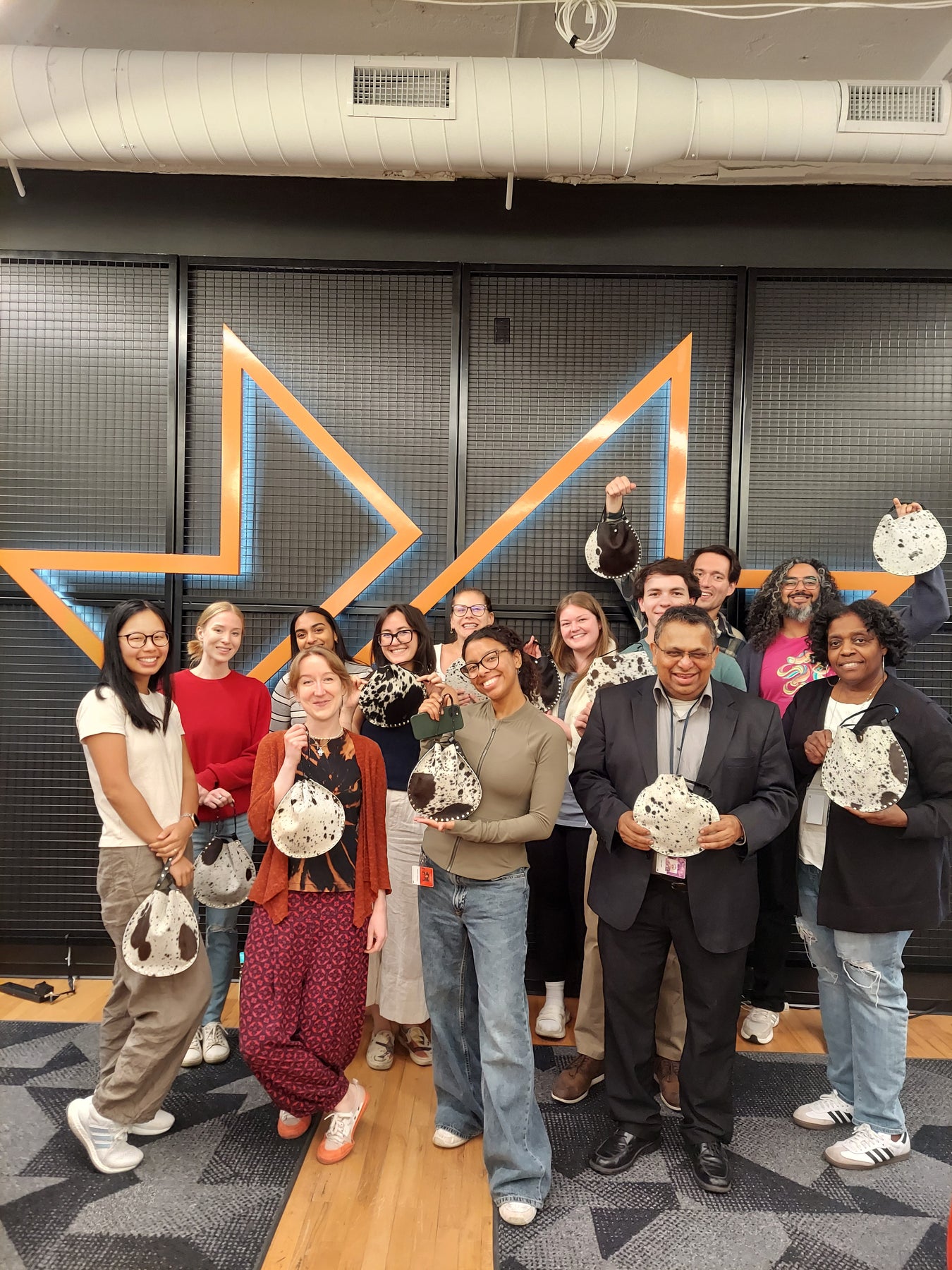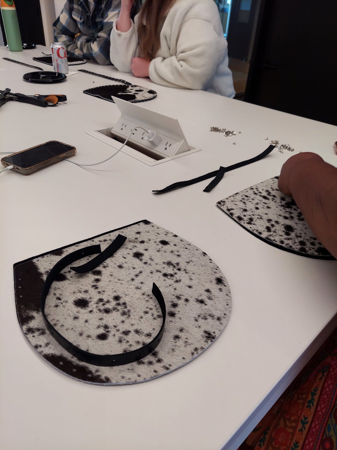 Simple construction of pre cut leather while you sip bubbles and enjoy the fun!
